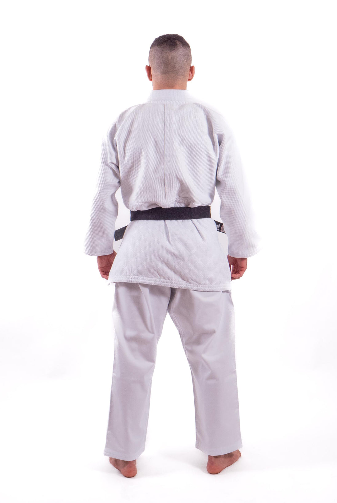 De Essimo Competition Judogi Wazari - Model 2024-2025-White is een populaire wedstrijdpak voor judoka's! Dit hoogwaardige judopak is nu verkrijgbaar in zowel wit als blauw, en komt in zowel regular als slim fit – zelfs in halve maten voor de perfecte pasvorm. Gemaakt van 750 grams polyester/katoen, biedt dit judopak een uitstekende prijs-kwaliteitverhouding.
