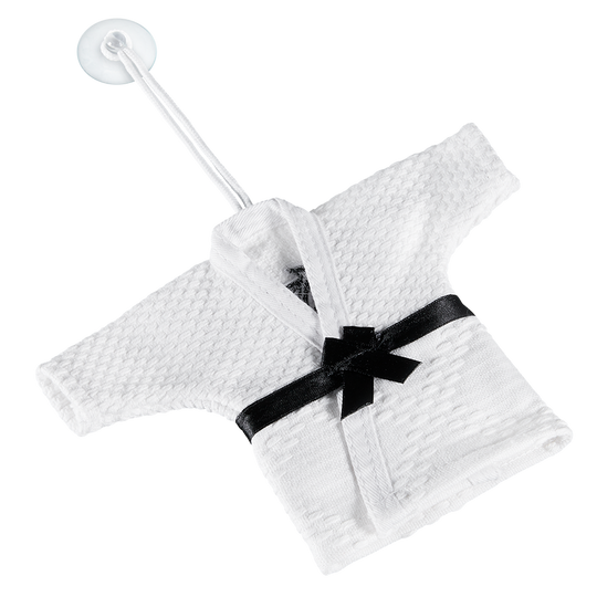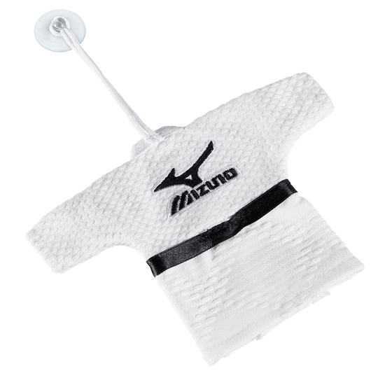 MIZUNO mini judopak wit met het MIZUNO logo de Runbird geborduurd achterop. Leuk om weg te geven of in de auto te hangen. Geleverd met zuignap.Normale prijs €4,95 -