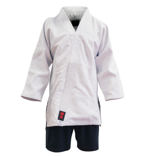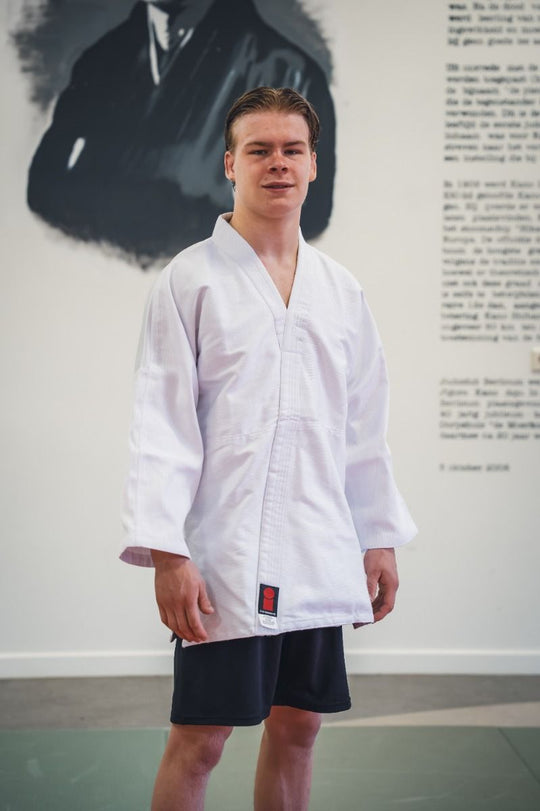 No reviewsEen Essimo judo sweater speciaal ontworpen voor schooljudo, of voor de eerste lessen. Deze jas heeft geen omslag, je trekt het aan als een trui, maar is wel gemaakt van een sterke poly/cotton judostof, de judoband...Normale prijs €39,95 -