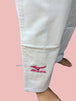 Broek: Verstevigingen vanaf de onderkant van de broek tot aan de knieën Geborduurd roze logo, Materiaal: 100% katoen