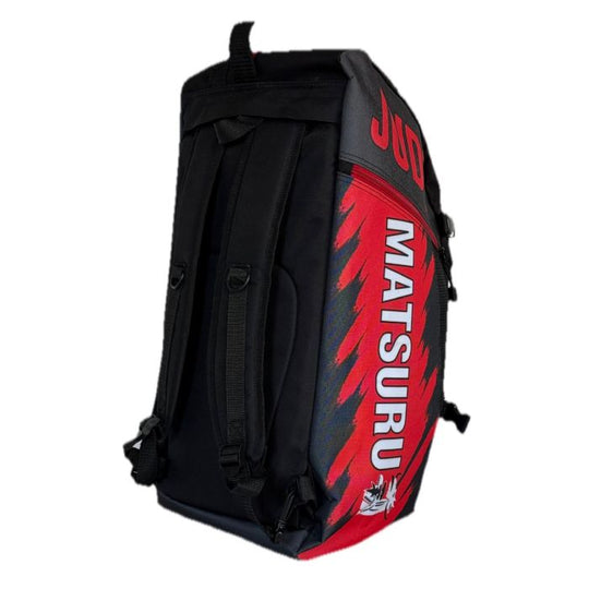 Sporttasche Rucksack. Hochwertige Tasche mit dem bekannten Matsuru-Logo. Mit dem Aufdruck Karate in Kanji-Schrift Die Maße betragen: 60x30x30 cm. Wir können diese Tasche auch ohne den KARATE -Aufdruck (in Kanji) liefern: Matsuru-Rucksack ohne Judo-AufdruckNormaler Preis €49,00 -