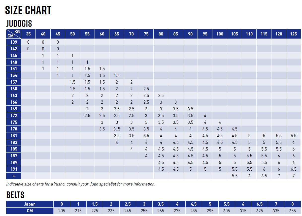 Welche Größe brauche ich? Der tatsächlich Die Körpergröße des Judoka wird aufgerundet. Alternativ finden Sie in der Fotogalerie eine Größentabelle, die die Körpergröße im Verhältnis zum Körpergewicht darstellt.