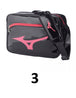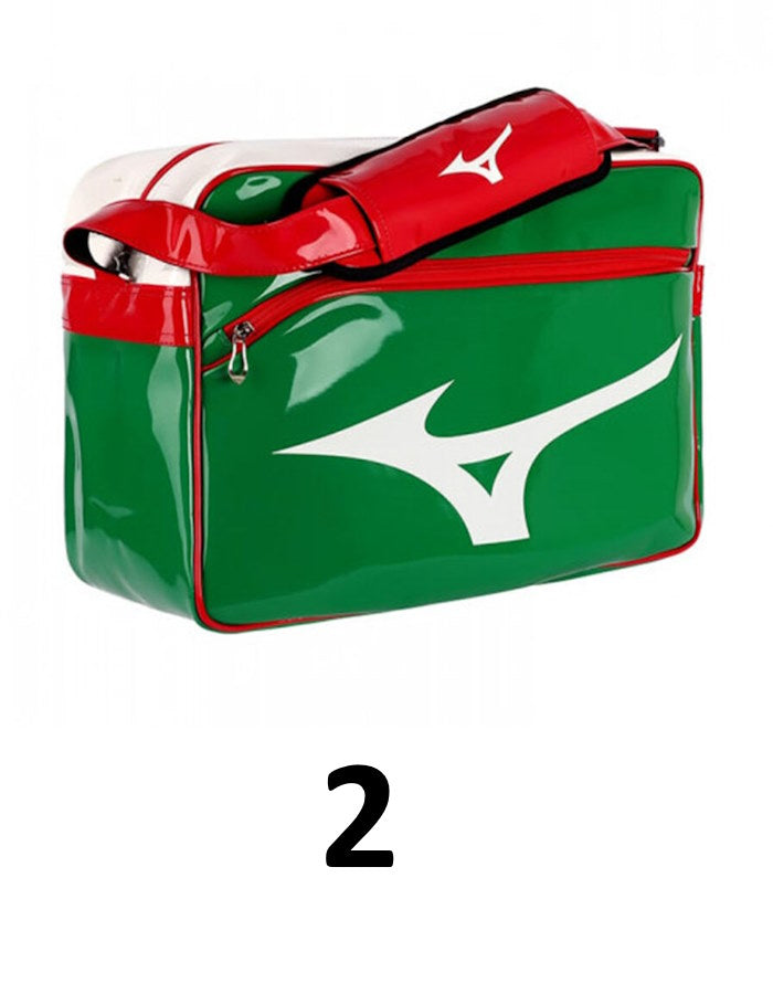 - Großes Mizuno-Logo auf der Vorderseite der Tasche aufgedruckt.