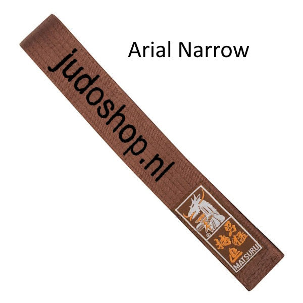 Omdat het borduren op een professionele borduurmachine gebeurt kunnen we hoge kwaliteit en een redelijk snelle levering garanderen! De borduring op de gekleurde banden word standaard gemaakt aan de kant van het merklabel, dit om een lege kant te behouden voor de behaalde slip. De Bruine en Zwarte band worden standaard aan de andere kant van het merklogo geborduurd. Maak de naam inclusief niet langer dan ongeveer 12 letters inclusief spaties, (dit voorkomt dat de borduring in de knoop van je nieuwe judoband komt te zitten).