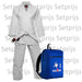 Startersset van Essimo: Een Judopak Kinza van glad katoen met een witte band en een stoere Essimo tas.