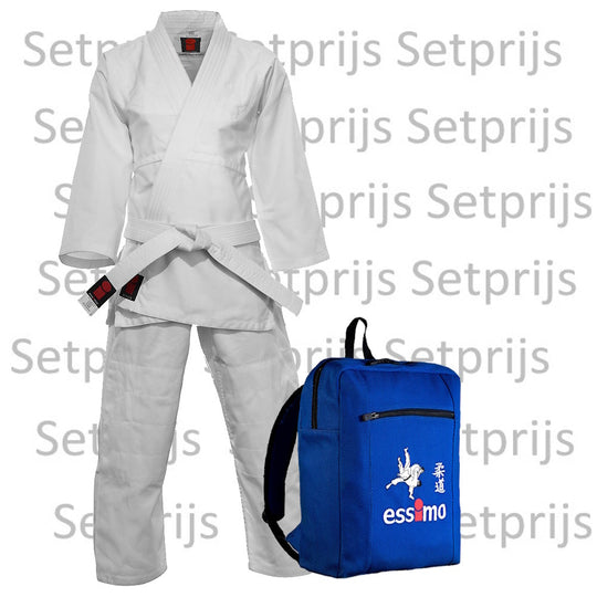 No reviewsStartersset van Essimo: Een Judopak Kinza van glad katoen met een witte band en een stoere Essimo tas. Judopak Essimo Kinza Verkrijgbaar in de maten 100 t/m 180 cm Advies: vanaf maat 150 een wat dikker pak....Sale price From €53,00Regular price €57,00 -