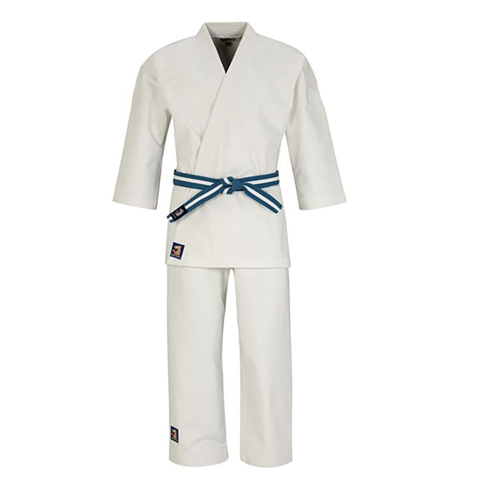 The Shia Ku-9 suit. This suit is soft (brushed), light, mix of 50% cotton and 50% polyester and with a longer jacket than a regular karate jacket.